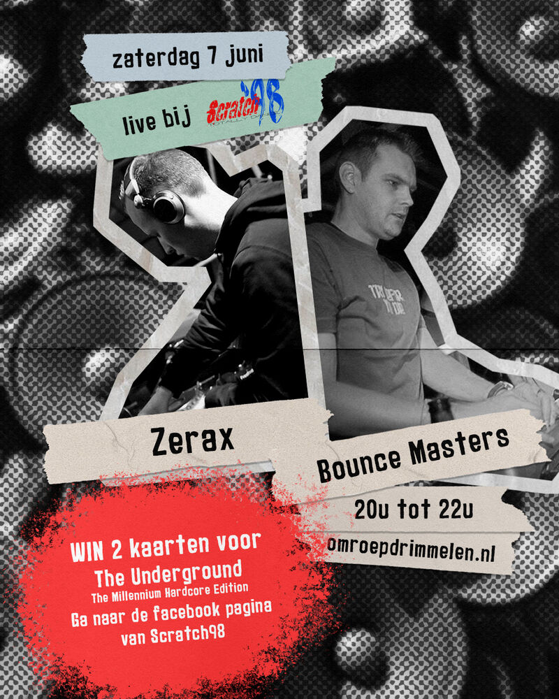Na ruim 10 jaar keert BGP Hardcore terug met The Underground; The Millennium Hardcore Edition. Ter ere van hun terugkeer komen Zerax en Bounce Masters op zaterdag 7 juni naar de studio van Scratch’98 om hun verhaal te vertellen maar vooral harde beats uit de speakers te laten knallen. En als klap op de vuurpijl mogen we 2 kaarten weggeven voor The Underground; The Millennium Hardcore Edition op 23 augustus in de Mezz in Breda. Het enige wat je hoeft te doen is naar de facebook pagina van Scratch’98 gaan en reageer onder de winactie post met: ik wil die kaarten. Op zaterdag 7 juni tijdens de uitzending maken we de winnaar bekend.